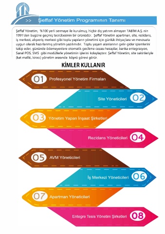 iş merkezi, alışveriş merkezi gibi toplu yapıların yönetimi için günlük ihtiyaçlara ve mevzuata